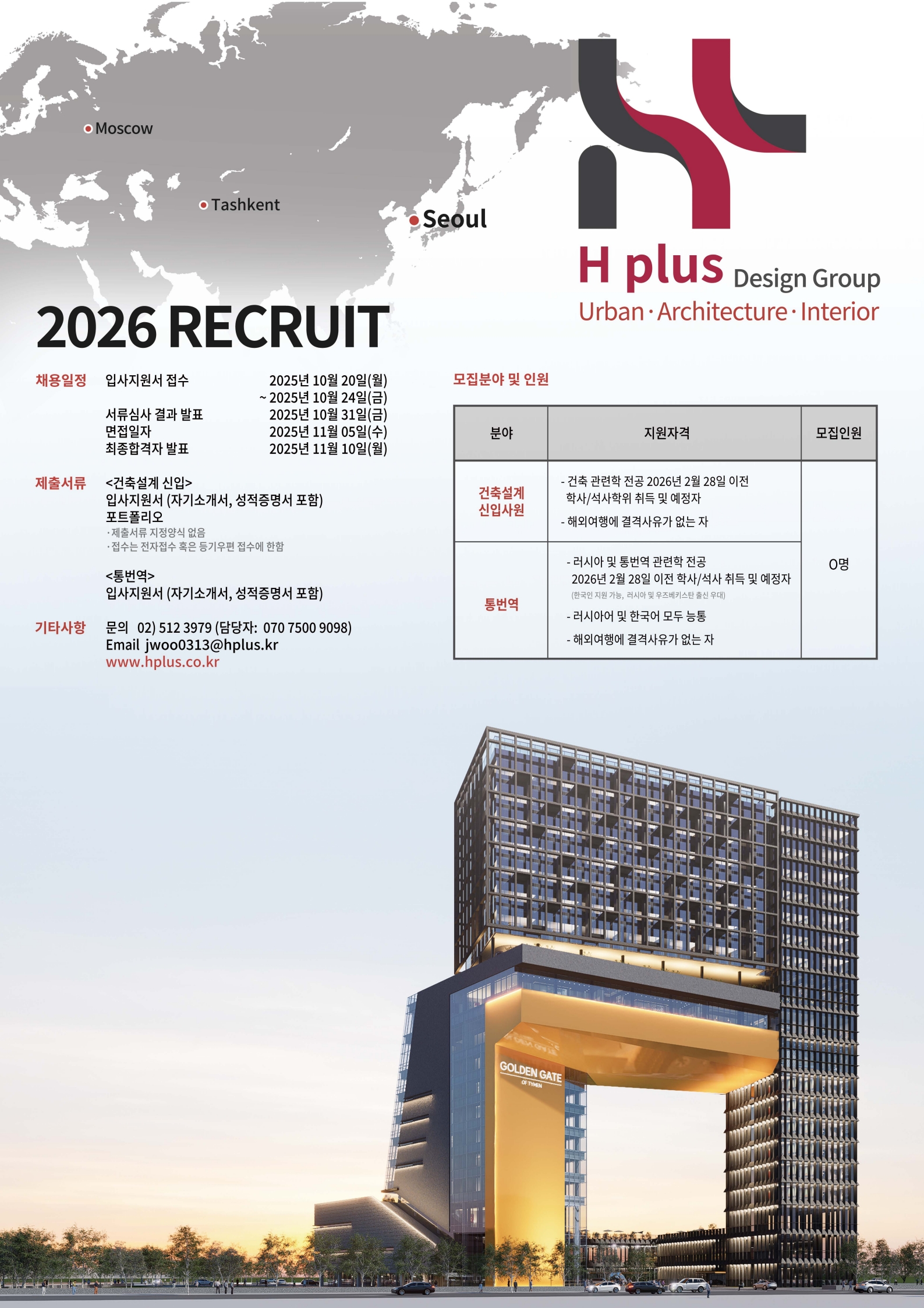 [채용] 2026 H PLUS 건축사사무소 신입사원 채용